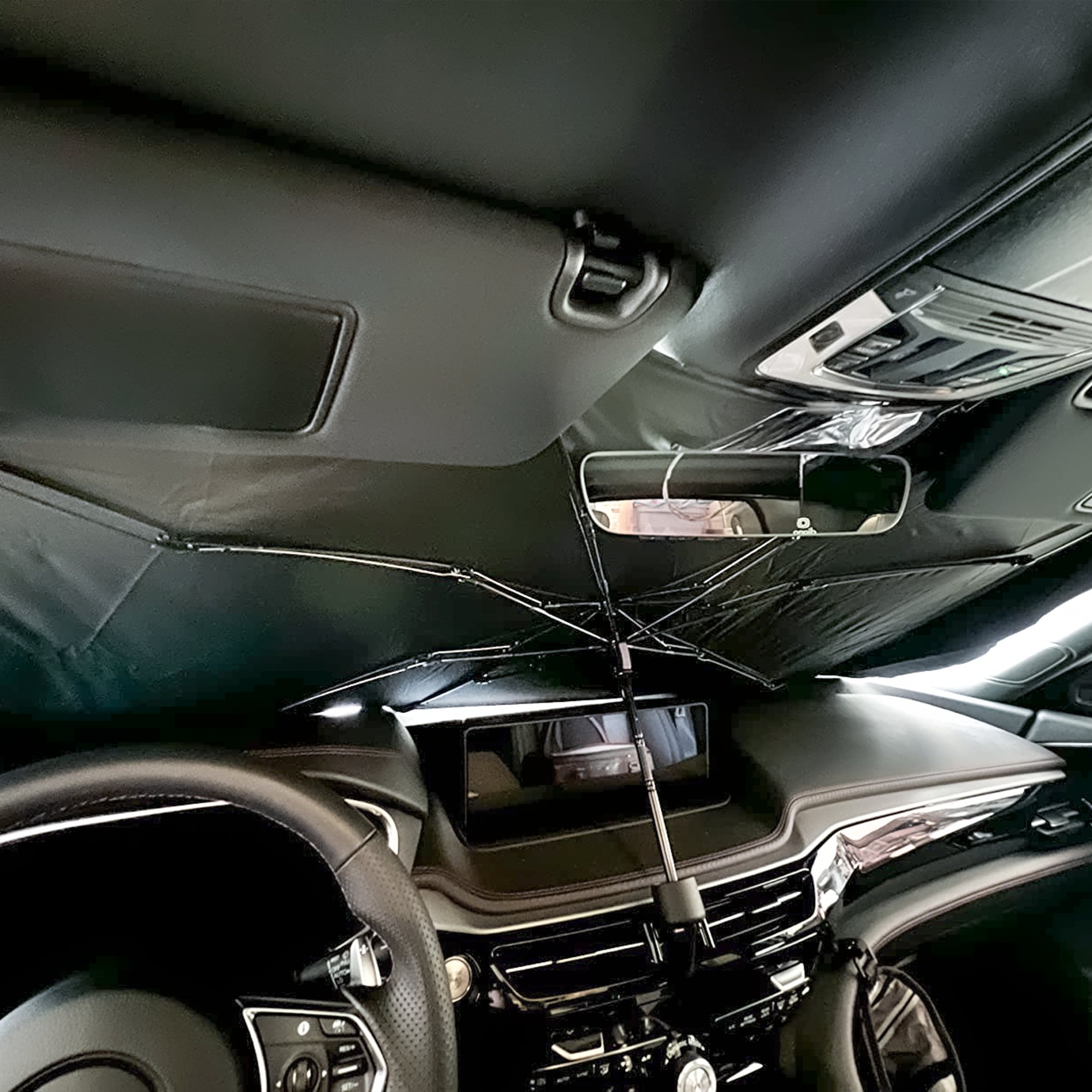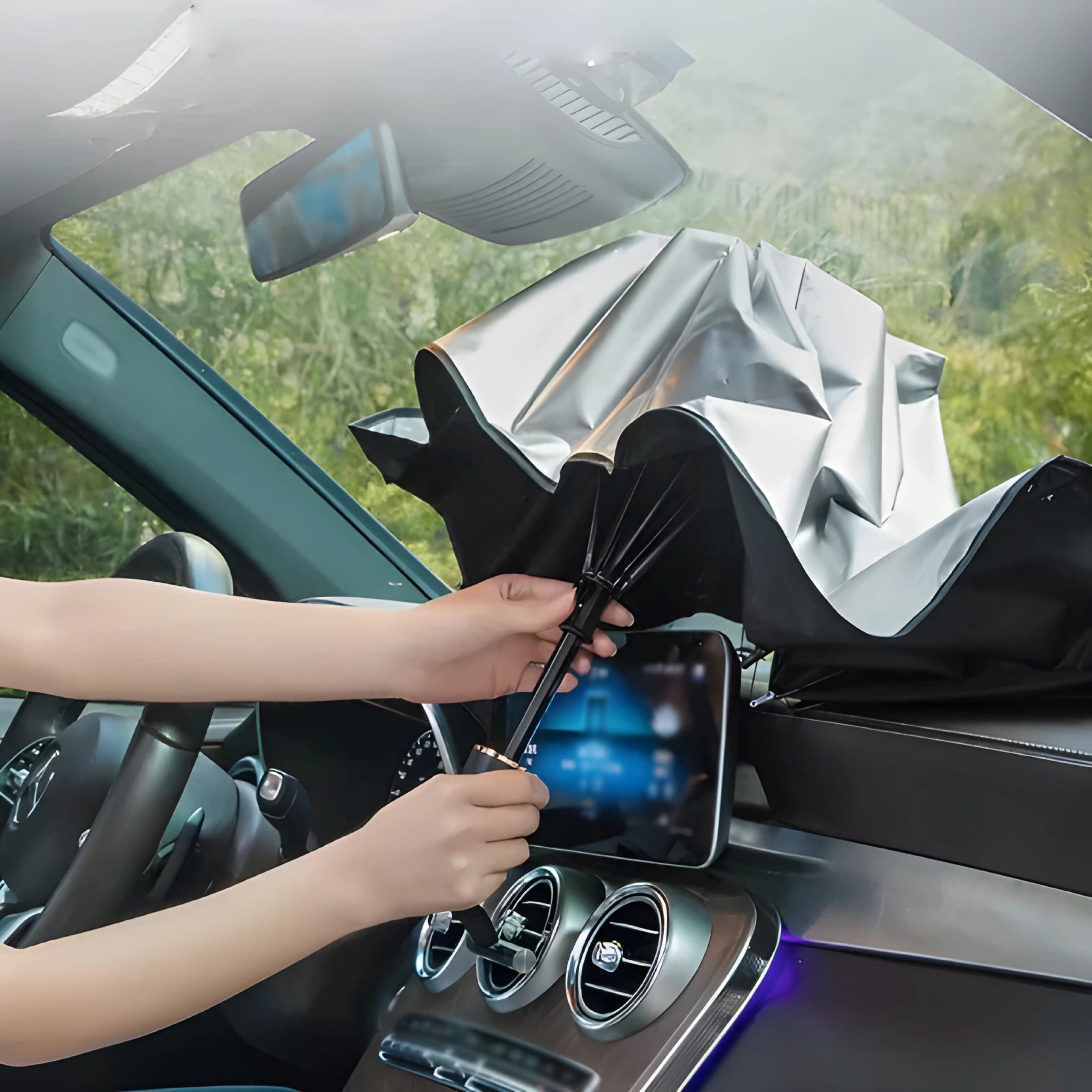 Keep your car cool with a single, swift motion. Our umbrella style sunshield has been designed to open in seconds & retracting just as quickly—traditional sunshields are a thing of the past.
